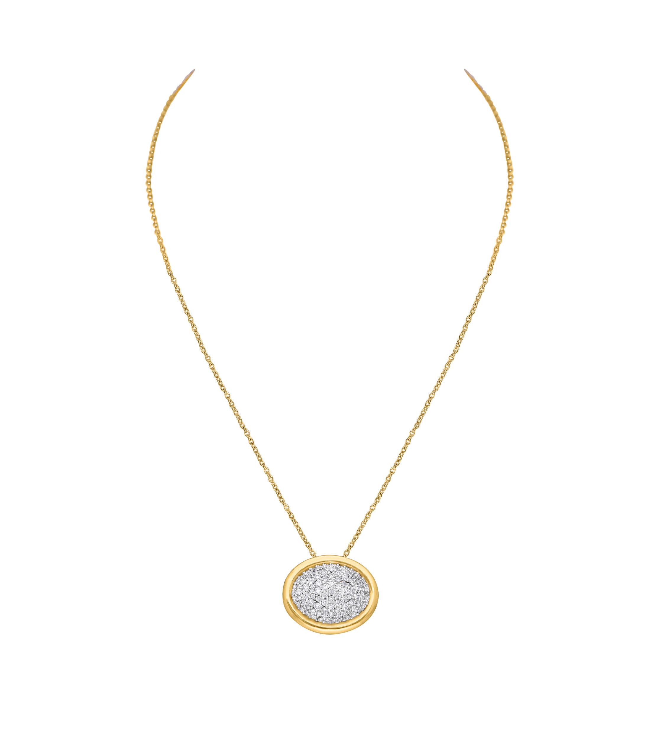 Be the first to review “Gold Rimmed Pave Diamond Oval Pendant On Fine Chain” Cancel reply