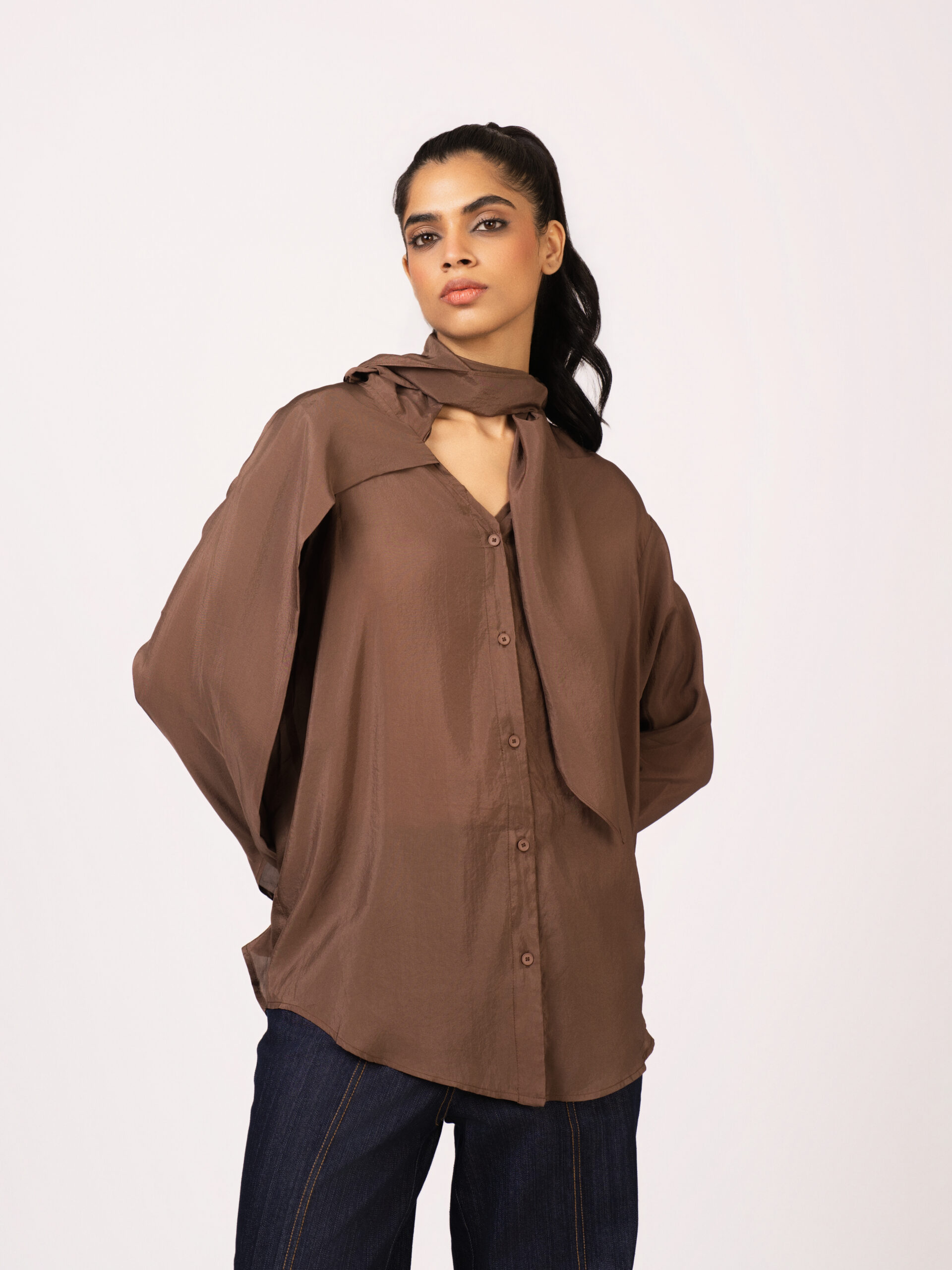 Maude Front Scarf Through Relaxed Silk Top